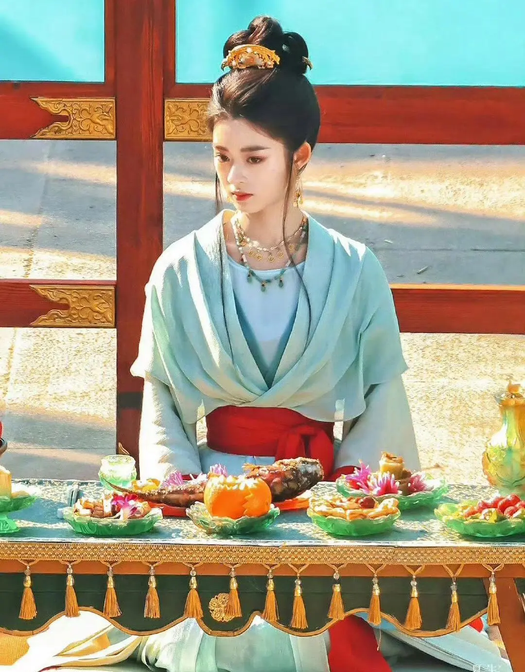 魏晋风古装穿在她身上很有质感,有种“吾家有女初长成”的欣慰感。