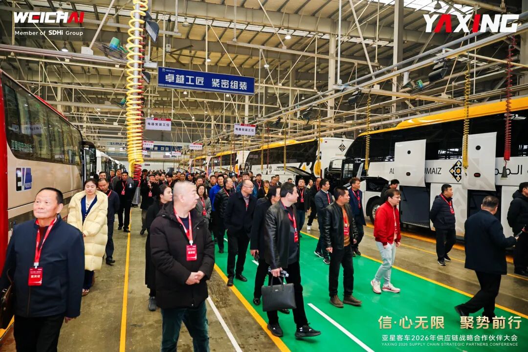 大会当日,与会嘉宾共同走进亚星客车现代化厂区,通过实地参观亚星客车在智能制造、工艺创新与精益管理方面的扎实积淀,对“匠心铸车、钻石品质”的生产理念有了更直观的认知。